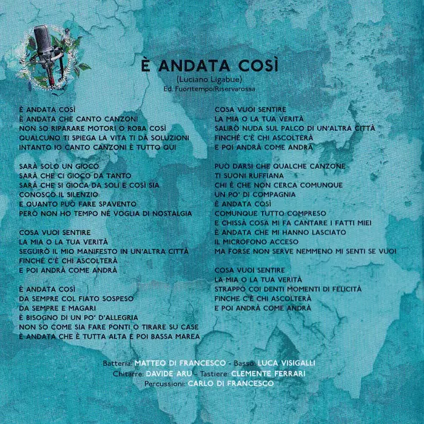 | Bass Luca Visigalli | Drums Matteo Di Francesco | Guitar Davide Aru | Keyboards Clemente Ferrari | Percussion Carlo Di Francesco | Written-By Luciano Ligabue | |||
