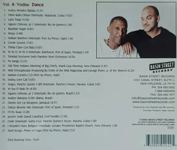 Los Hombres Calientes: Vol. 4: Vodou Dance version on CD in Standard edition. This particular edition was published in USA in publishing company Basin Street Records on 29. January 2004. Album spans genres Folk, World, & Country, Jazz and Latin Jazz.