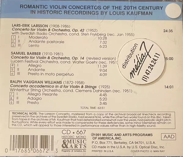 | Title | 20th Century Romantic Violin Concertos (Historical Recordings 1951-1955) |