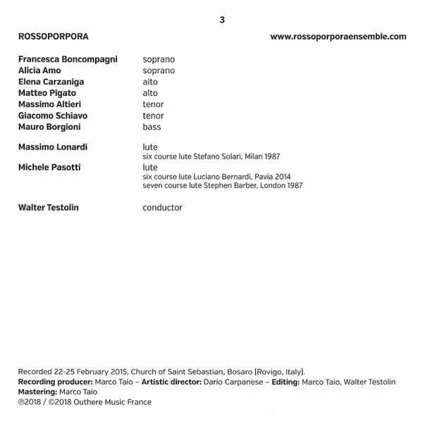 | Artist | Luca Marenzio | Walter Testolin | RossoPorpora |