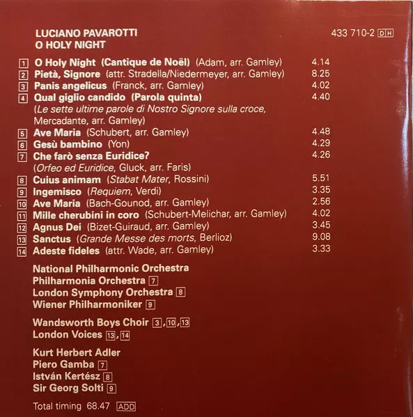 | Artist | Luciano Pavarotti | National Philharmonic Orchestra | Kurt Herbert Adler |