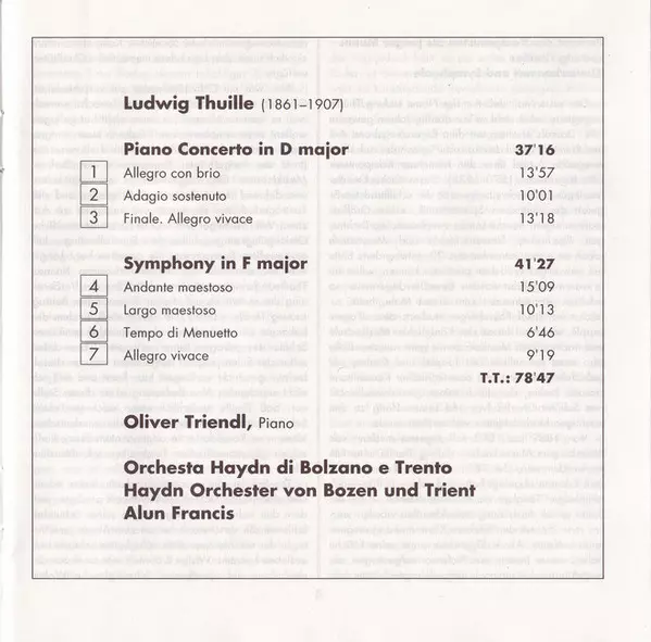 | Artist | Alun Francis | Oliver Triendl | Ludwig Thuille | Orchestra Haydn Di Bolzano E Trento |