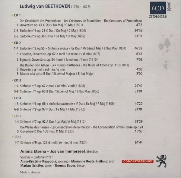 Ludwig van Beethoven: Symphonies / Ouvertures version on 6CD/Box Set in Standard edition. This particular edition was published in Europe in publishing company Zig Zag Territoires year 2008. Album spans genres Classical and Romantic.
