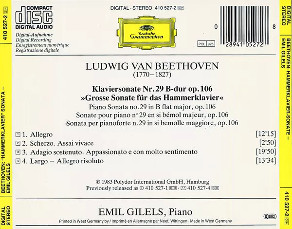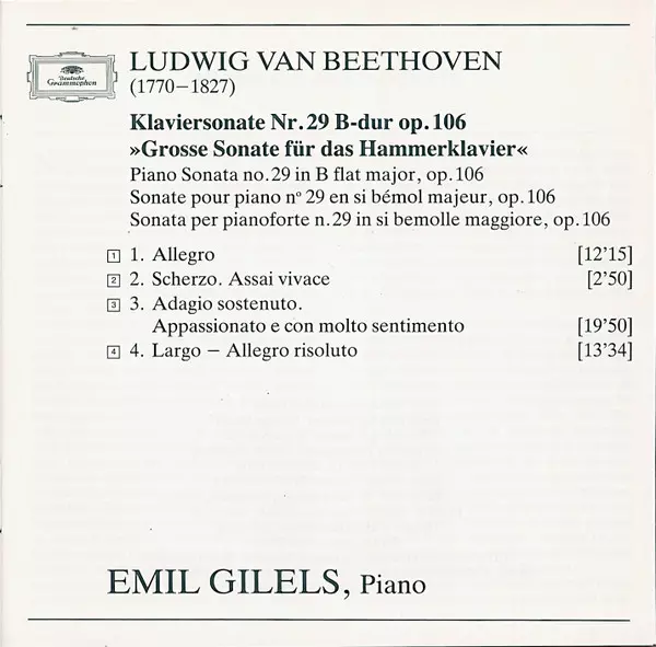 | Artist | Ludwig van Beethoven | Emil Gilels |