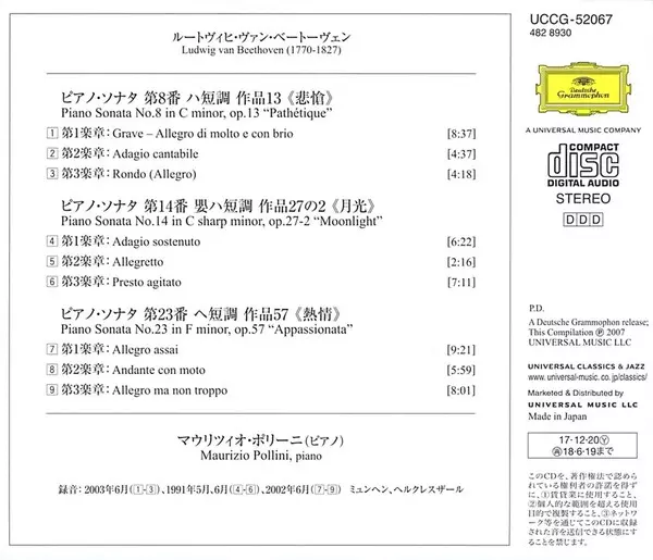| Title | Piano Sonatas No.8 "Pathetique" / No.14 "Moonlight" / No.23 "Appassionata" |