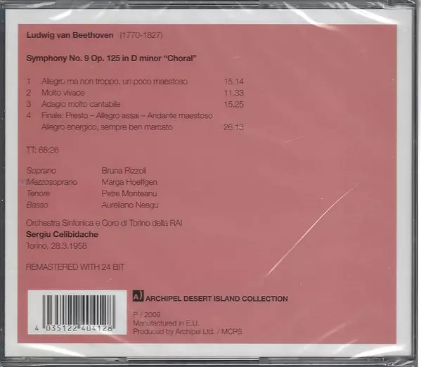 | Artist | Ludwig van Beethoven | Sergiu Celibidache | Orchestra Sinfonica Di Torino Della RAI | Coro Di Torino Della RAI |