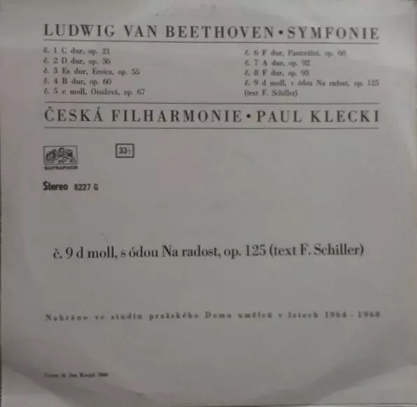 | Artist | The Czech Philharmonic Orchestra | Ludwig van Beethoven | Czech Philharmonic Chorus | Paul Kletzki |