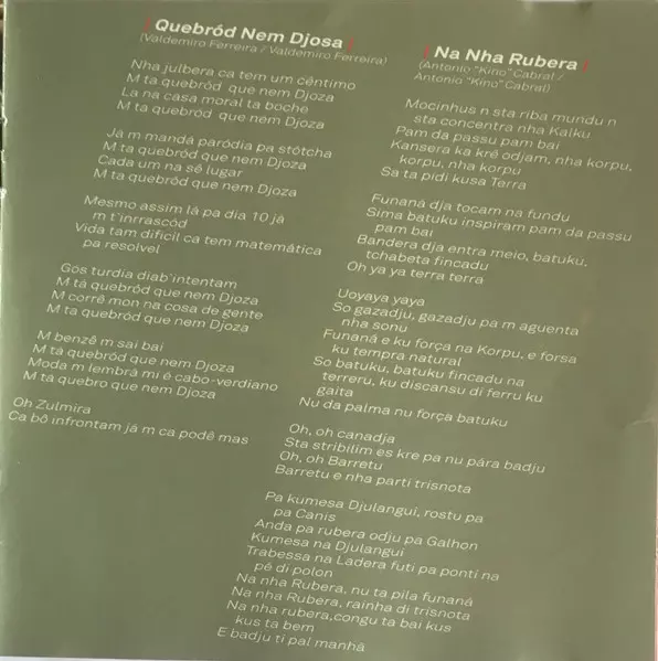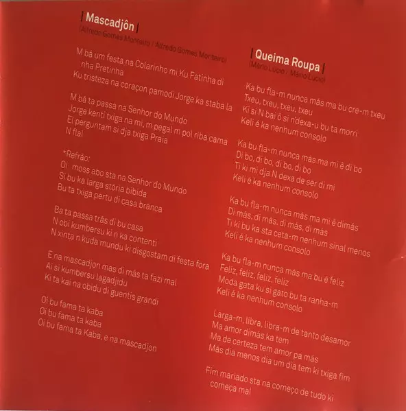 Acoustic Guitar João Pina "Kako" Alves, Vaiss | Backing Vocals Kaxuxa, Mário Marta, Vânia Oliveira | Bass Guitar Edevaldo Figueiredo | Cavaquinho Toy Vieira | Drums Cau Paris | Music By, Lyrics By Alfredo Costa Monteiro | Percussion Paulino Baptista "Jair" Nuñes De Pina