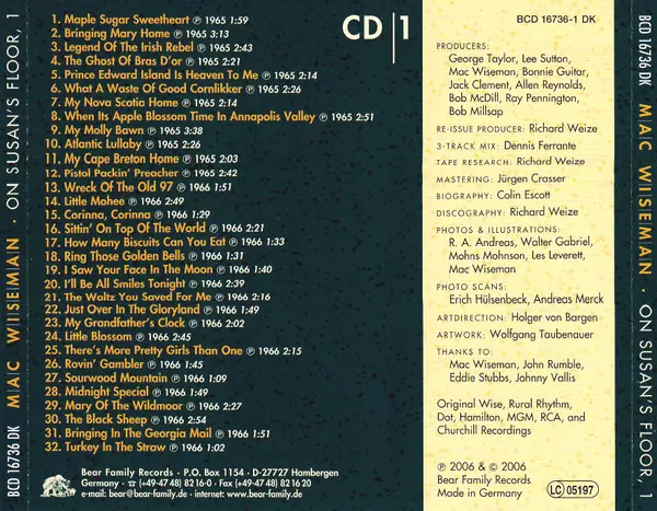 Mac Wiseman: On Susan's Floor version on 4CD/Box Set in Standard edition. This particular edition was published in Germany in publishing company Bear Family Records on 2. April 2007. Album spans genres Folk, World, & Country, Country and Bluegrass. Box Set 4CD + Buch.