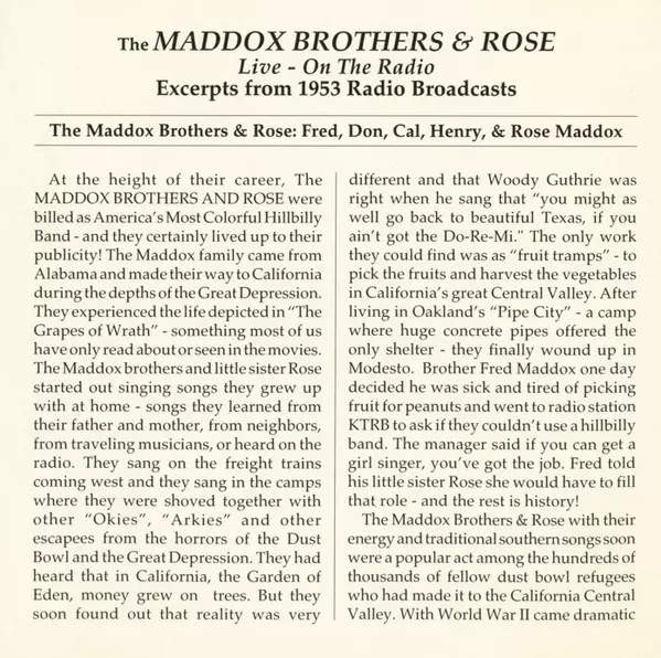 | Artist | Maddox Brothers and Rose |