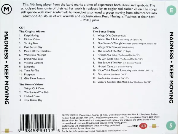 Madness: Keep Moving DLX version on 2CD in deluxe Remastered edition. This particular edition was published in United Kingdom in publishing company Salvo in cooperation with Union Square Music on 30. June 2023.