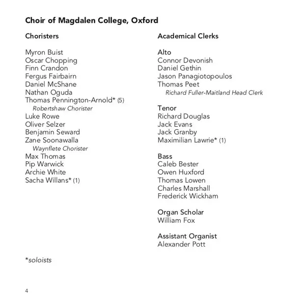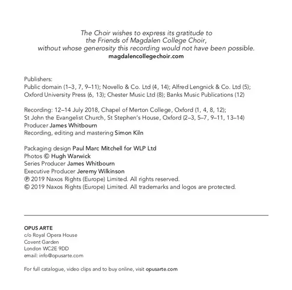 Artist | Magdalen College Choir Oxford | Mark Williams |