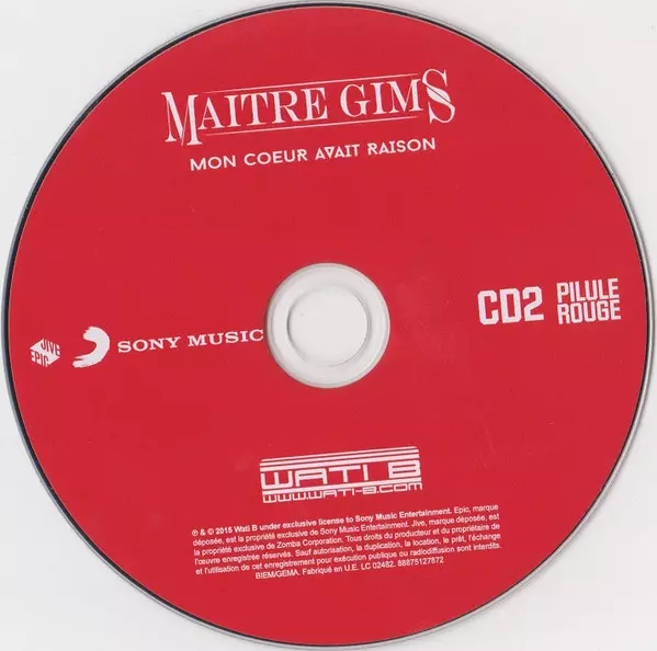 Maitre Gims: Mon Coeur Avait Raison version on 2CD in Standard edition. This particular edition was published in Europe in publishing company Sony Music in cooperation with Jive/Epic on 4. September 2015.