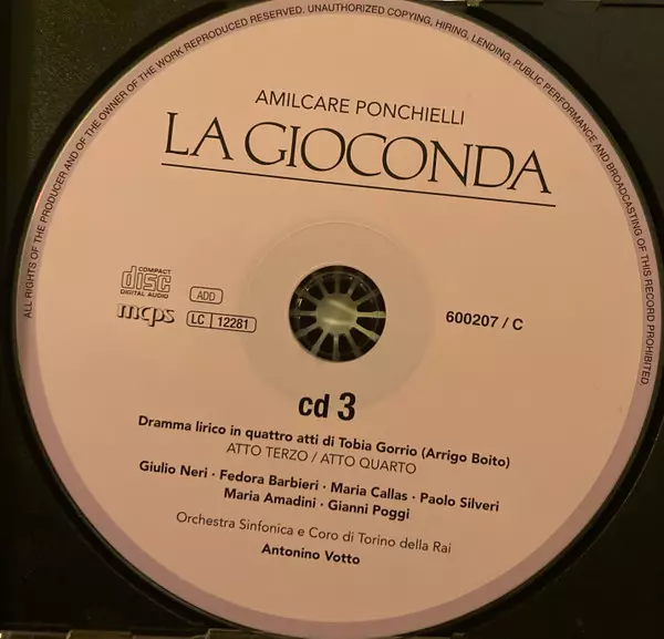 | Artist | Maria Callas | Antonino Votto | Amilcare Ponchielli | Orchestra Sinfonica Di Torino Della RAI | Fedora Barbieri | Giulio Neri | Paolo Silveri | Gianni Poggi |