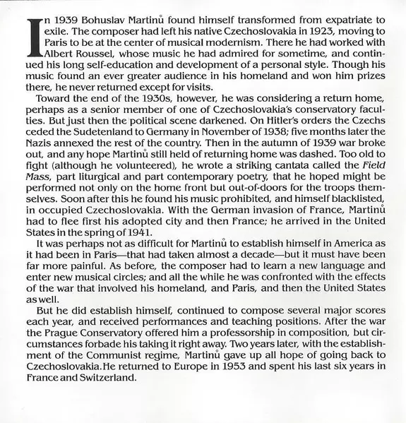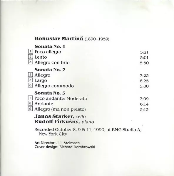| Artist | Bohuslav Martinů | Janos Starker | Rudolf Firkušný |