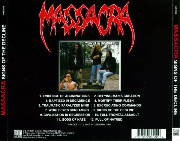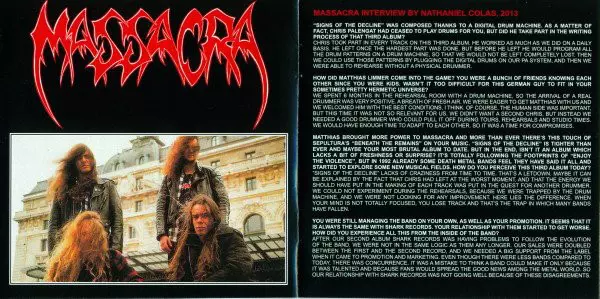 Formed in 1986, Massacre became a leading figure in the European death metal scene in the early 90s with classics like "Enjoy The Violence" and "Signs Of The Decline", and before their hellish debut "Final Holocaust" they managed to play tons of shows in the US and Europe completely DIY style. By the way, the band's third album "Signs Of The Dec...