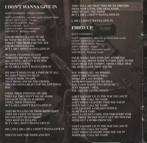 Backing Vocals Amy Helm | Bass Dennis Pendrith | Drums Geoff Arsenault | Electric Guitar, Lead Vocals Matt Andersen | Organ John Sheard | Resonator Guitar Colin Linden | Written-By Matt Andersen