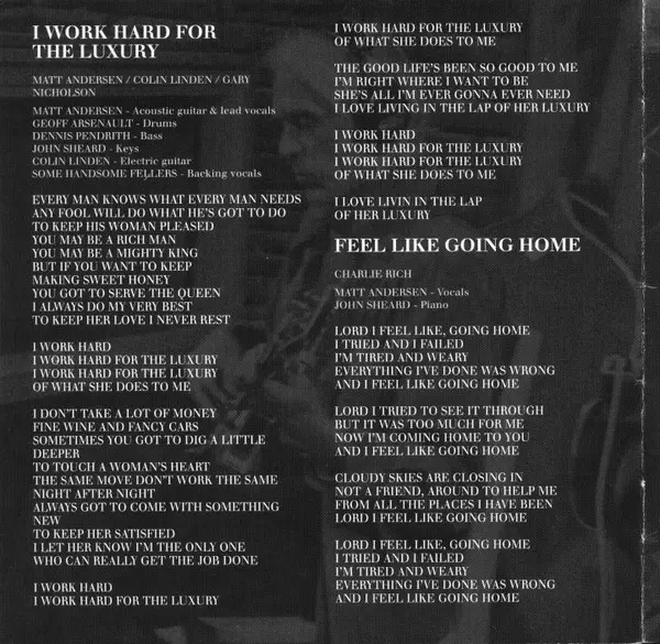 Bass Dennis Pendrith | Drums Geoff Arsenault | Electric Guitar Colin Linden | Electric Guitar, Lead Vocals Matt Andersen | Organ John Sheard | Saxophone Jim Horn | Trumpet Quentin Ware | Written-By Colin Linden, Matt Andersen