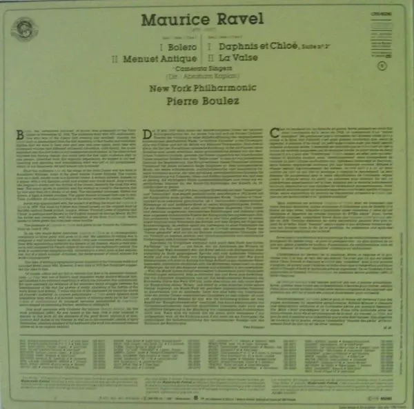 | Artist | Maurice Ravel | Pierre Boulez | New York Philharmonic |