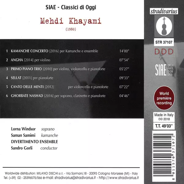 | Artist | Sandro Gorli | Divertimento Ensemble | Lorna Windsor | Mehdi Khayami | سامان صمیمی |