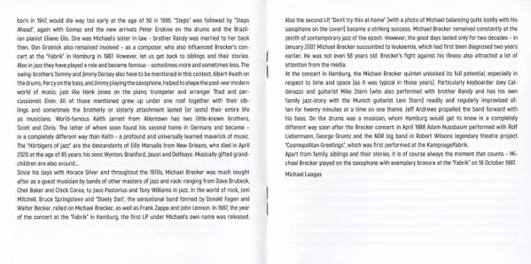 | Artist | The Michael Brecker Band | Randy Brecker Band |