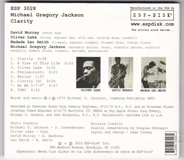| Artist | Wadada Leo Smith | David Murray | Oliver Lake | Michael Gregory Jackson |