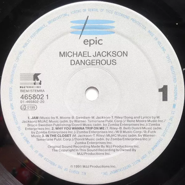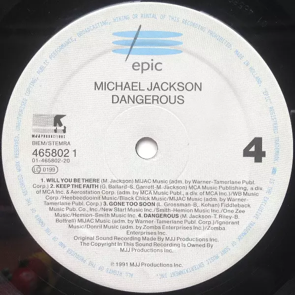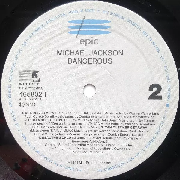 Michael Jackson: Dangerous version on vinyl 2LP in Standard edition. This particular edition was published in Europe in publishing company Epic year 1991.
