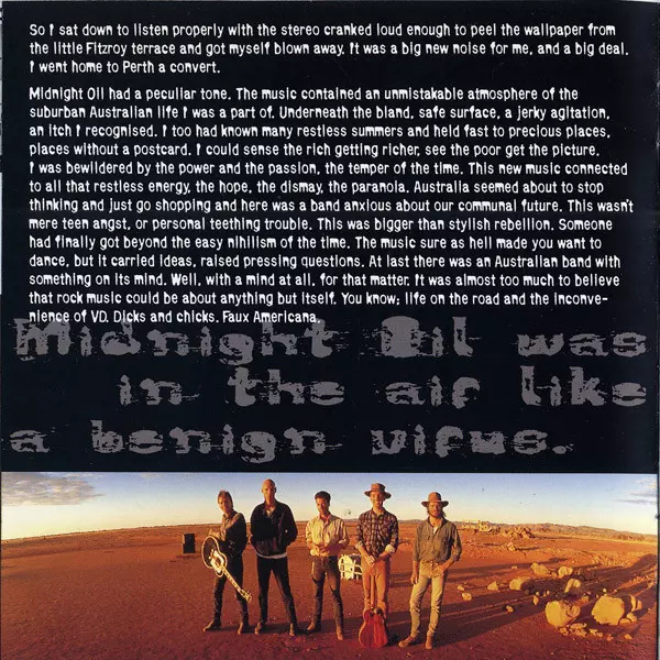Aniž by Midnight Oil dělali velký rozruch kolem svého 20. výročí, vydali po celkem 12 LPch deskách a 2 EP své první "Best Of" CD. Tato nabitá kolekce hitů nejznámějších australských eko-rockerů, vydaná v roce 1997, obsahuje "Beds Are Burning", "Blue Sky Mine", "Power & The Passion" - celkem 17 megaúspěchů.