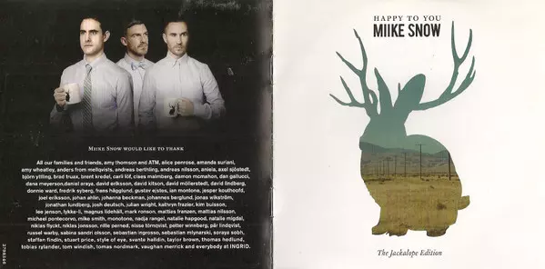 Miike Snow: Happy To You (The Jackalope Edition) version on 2CD in Standard edition. This particular edition was published in Australasia in publishing company Universal Music on 27. March 2012. Album spans genres Rock, Pop, Electronic, Indie Rock, Pop Rock and Synth-pop.