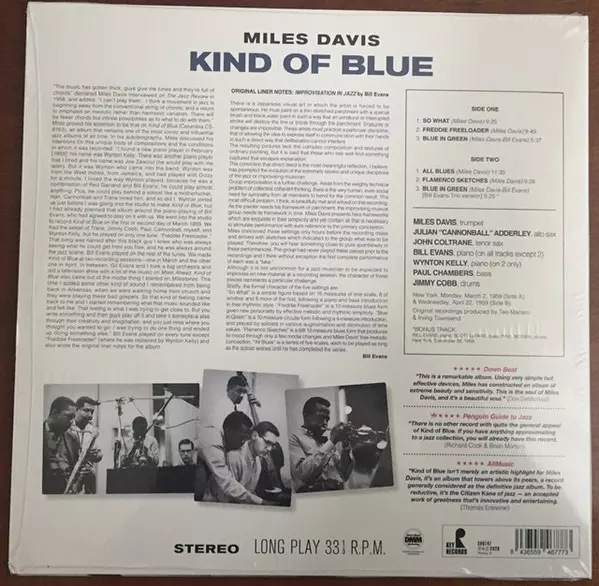 Miles Davis' Kind of Blue is one of the most influential jazz albums of all time. Released in 1959, the album features Davis on trumpet alongside John Coltrane, Cannonball Adderley, Bill Evans and Wynton Kelly. The album was recorded in a single session and the musicians improvised based on sketches of melodies provided by Davis.The album's infl...