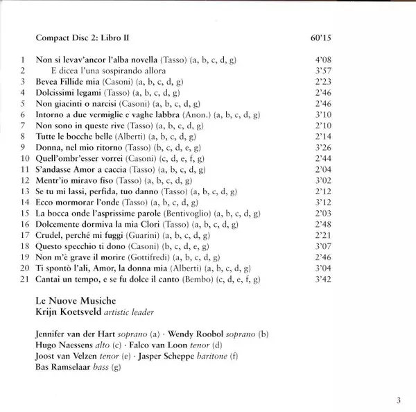 | Artist | Claudio Monteverdi | Krijn Koetsveld | Le Nuove Musiche |