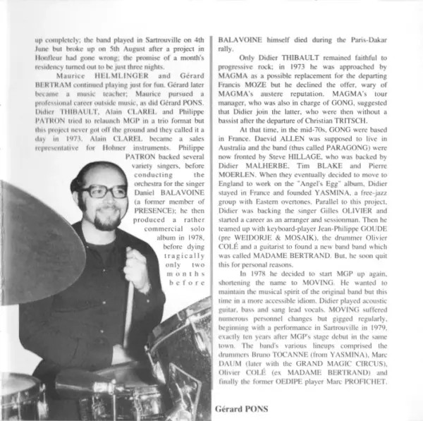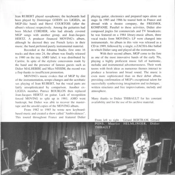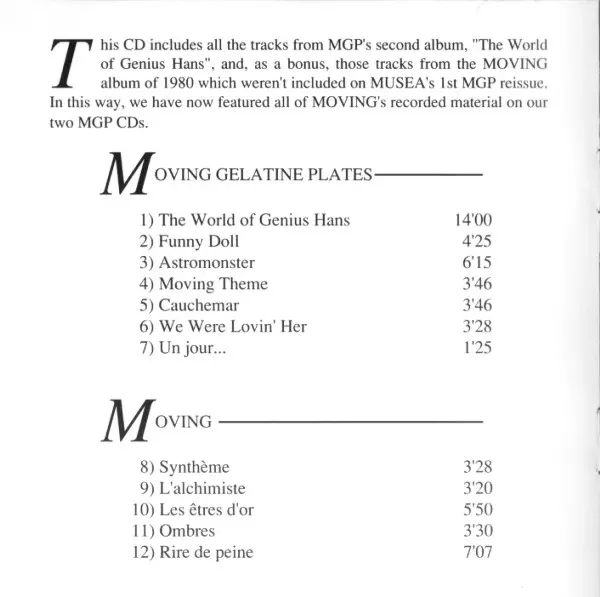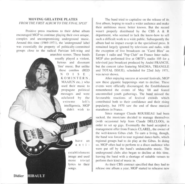 Moving Gelatine Plates was a French progressive rock band formed in the late 1960s. The group was known for their complex musical compositions, blending elements of jazz, rock, and avant-garde. They were part of the burgeoning progressive rock scene in Europe and gained recognition...