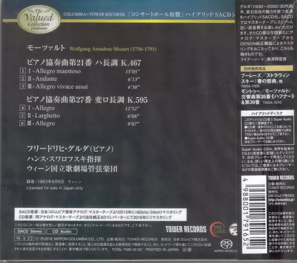 | Artist | Wolfgang Amadeus Mozart | Friedrich Gulda | Orchester Der Wiener Staatsoper | Hans Swarowsky |