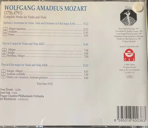 | Sinfonia Concertante For Violin And Viola In E Flat Major K 364 | ||