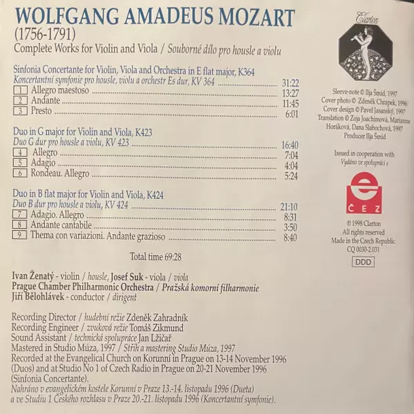 | Artist | Wolfgang Amadeus Mozart | Jiří Bělohlávek | Josef Suk | Ivan Ženatý |