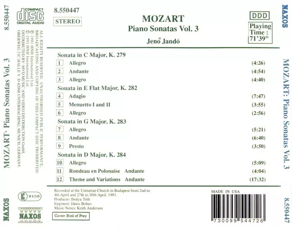 | Artist | Wolfgang Amadeus Mozart | Jenö Jandó |