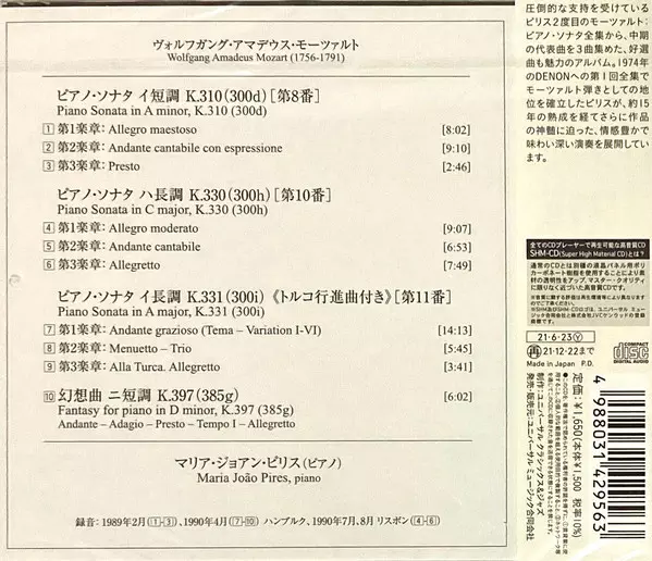 | Artist | Wolfgang Amadeus Mozart | Maria-João Pires |