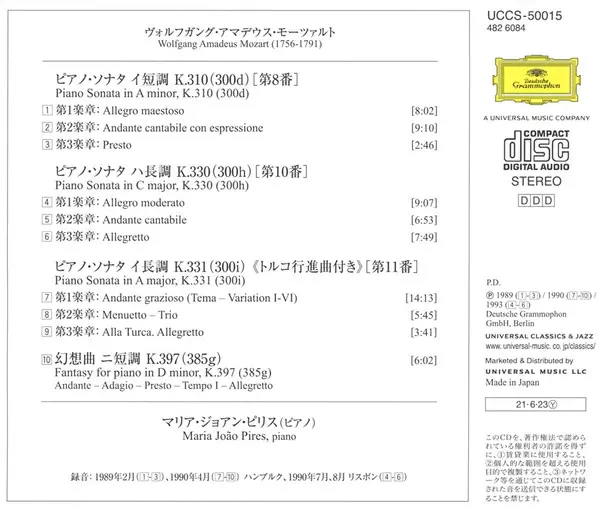 | Title | Klaviersonaten K.310 / K.330 / K.331 "Alla Turca" / Fantasie K.397 |