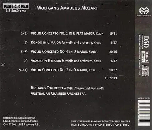 | Artist | Wolfgang Amadeus Mozart | Richard Tognetti | Australian Chamber Orchestra |