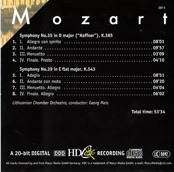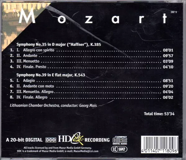 | Title | Symphony No.35 In D Major ("Haffner"), K.385 / Symphony No.39 In E Flat Major, K.543 |