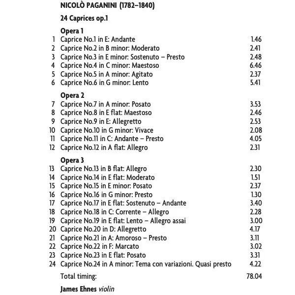 | Artist | Niccolò Paganini | James Ehnes |