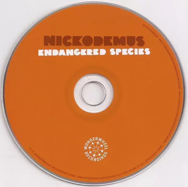 Nickodemus: Endangered Species version on CD in Standard edition. This particular edition was published in USA in publishing company Wonderwheel Recordings on 19. May 2016. Album spans genres Electronic, Funk / Soul, Hip Hop, Downtempo and Trip Hop.