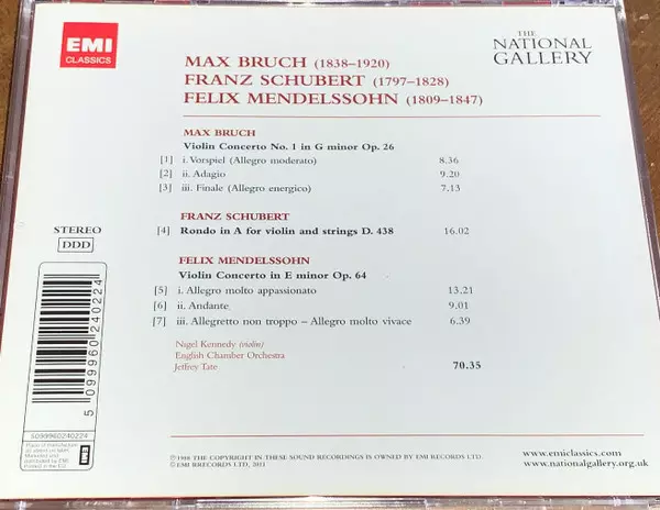 | Artist | Franz Schubert | Felix Mendelssohn-Bartholdy | English Chamber Orchestra | Nigel Kennedy | Max Bruch | Jeffrey Tate |