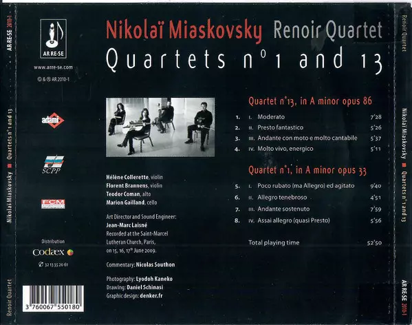 | Artist | Nikolai Myaskovsky | Renoir Quartet |