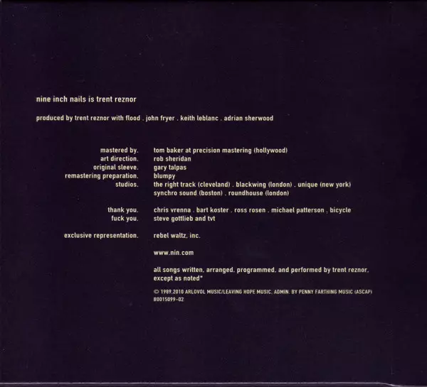 Engineer [Engineering] John Fryer, Keith LeBlanc, Ken Quartarone, Kennan Keating | Mixed By [Mix] John Fryer, Keith LeBlanc, Trent Reznor | Producer [Production] John Fryer, Trent Reznor | Programmed By [Additional Synth Programming] Flood, Tim Niemi