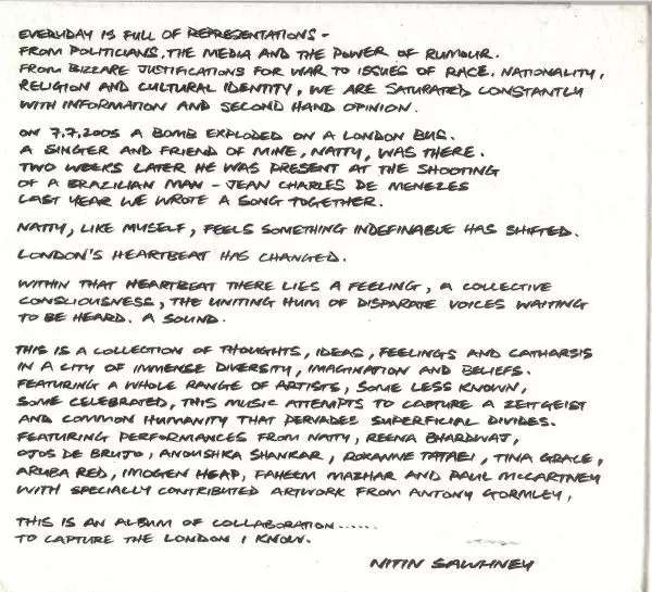 Cello Ian Burdge | Drums Ralph Salmins | Featuring Natty (3) | Percussion Steve Shehan | Programmed By, Acoustic Guitar, Thumb Piano Nitin Sawhney | Vocals Natty (3) | Written-By Natty (3), Nitin Sawhney