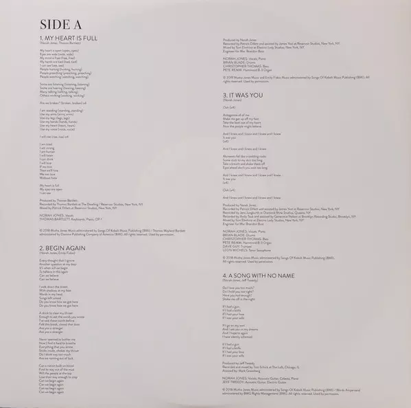 Popular singer-songwriter and pianist Norah Jones is releasing Begin Again on April 12 this year, an album consisting of seven songs Jones recorded over the past year with the help of Jeff Tweedy and Thomas Bartlett. The album will be available on vinyl, CD and digitally. The album's lead single is "Just a Little Bit," on which Jones is accompan...