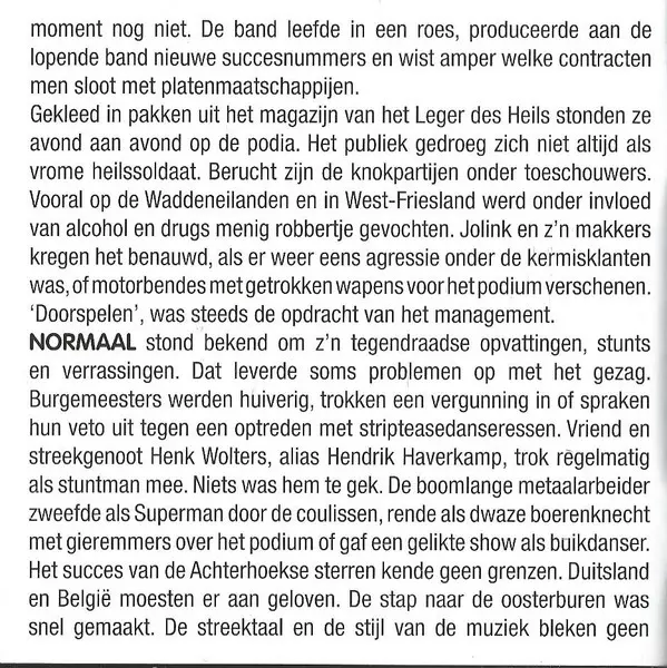 Leading Dutch & dialect-language rockband from Hummelo, Gelderland . Normaal is formed in 1975. The band members all have names that relate to the region they come from. Singer Bennie Jolink sings in the local dialect of the Achterhoek . In 1976 Normaal records it's first single 'H...