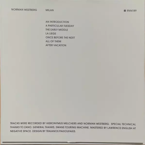 | Artist | Norman Westberg |