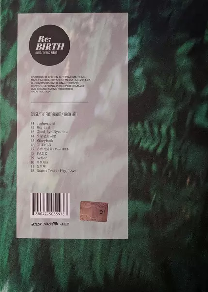 Nu'est: Re:BIRTH version on CD in Standard edition. This particular edition was published in South Korea in publishing company Pledis Entertainment in cooperation with Loen Entertainment on 22. July 2014. Album spans genres Pop, Electronic, Hip Hop, Pop Rap and K-pop.